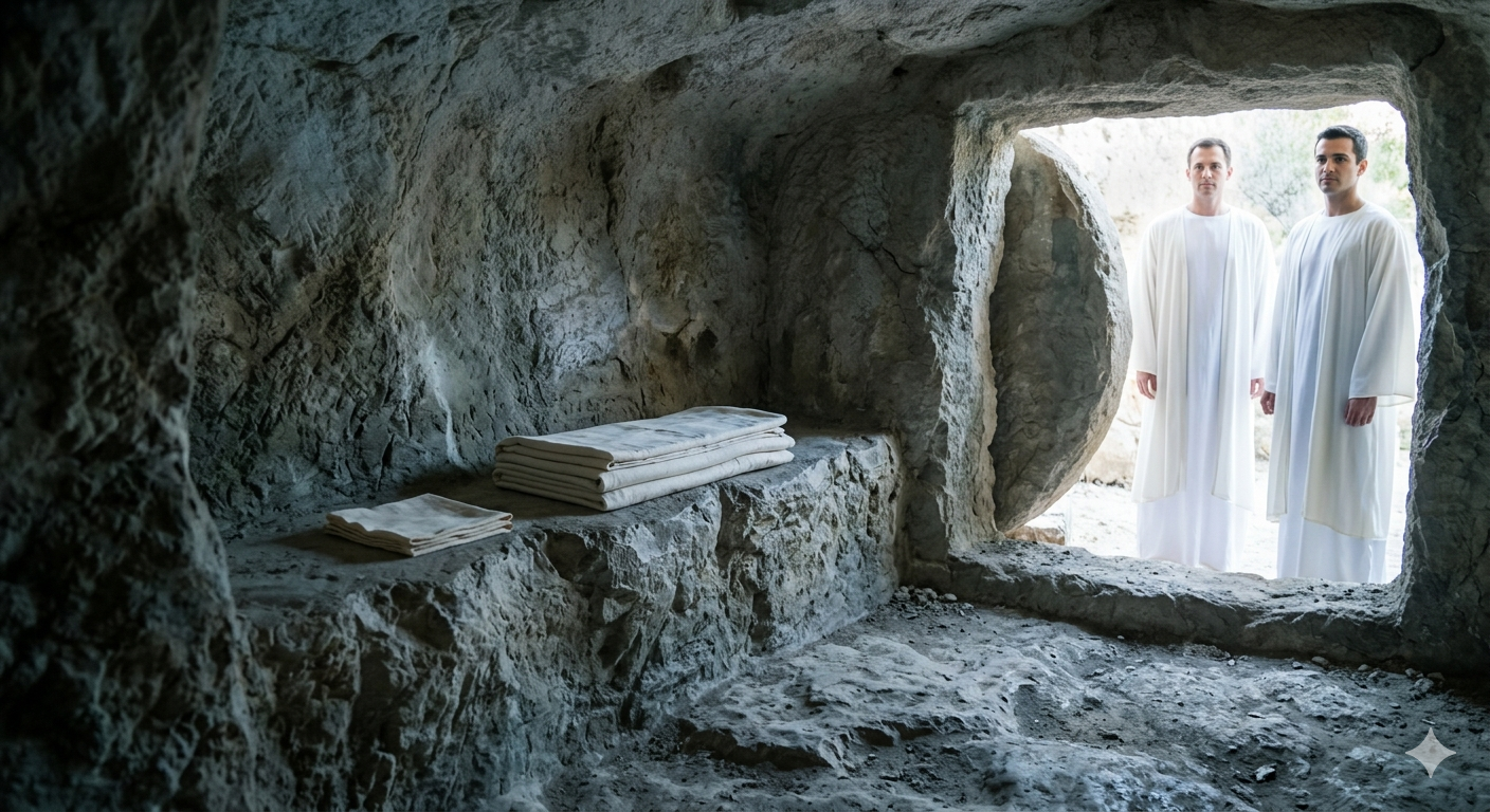 Like so many of our worst fears, they found it had been taken care of. When they arrived, the tomb was empty. The burial clothes were folded neatly. Two men stood outside, dressed in dazzling white.